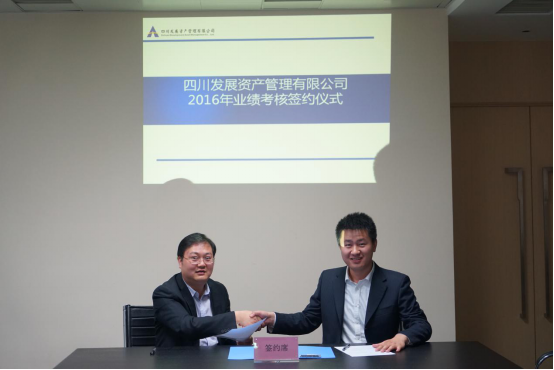 為了保證2016年度經(jīng)營目標順利實現(xiàn),建立完善的績效管理體系和激勵約束機制。2016年4月19日,四川發(fā)展資產(chǎn)管理有限公司舉行了簽約儀式,由蒙宇總經(jīng)理與業(yè)務(wù)團隊分別簽署了《2016年度目標責任書》。川發(fā)資管公司董事長楊朝暉及其他領(lǐng)導班子和全體員工參加了簽約儀式。
