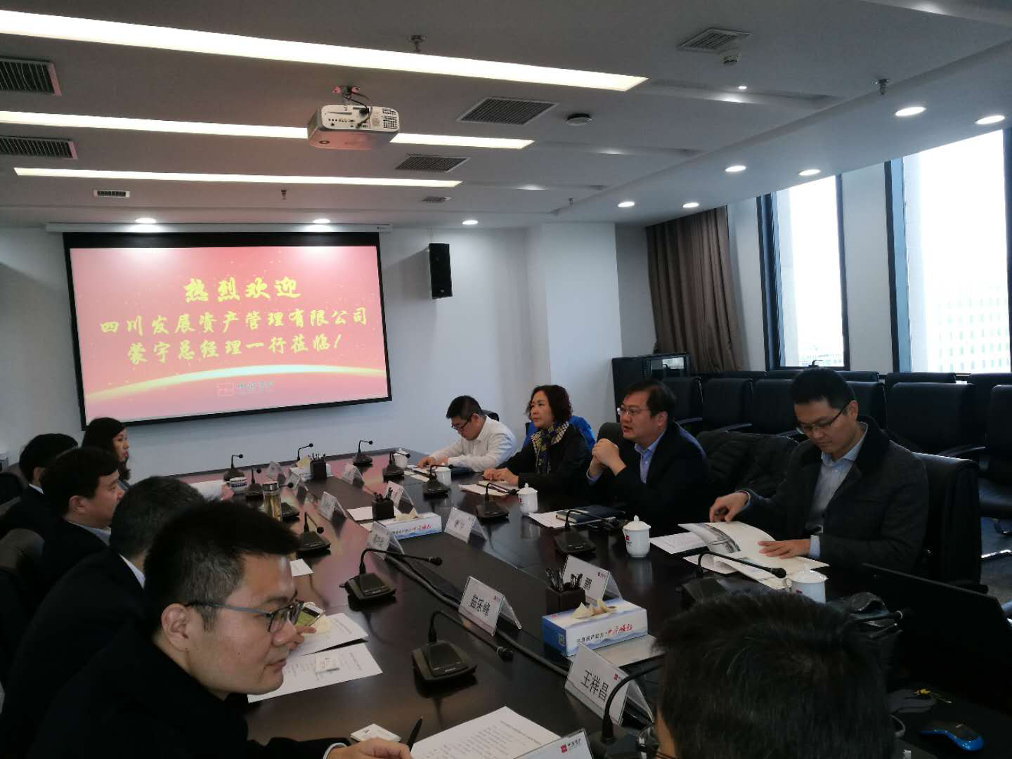 11月22日,四川發(fā)展資產(chǎn)管理有限公司(以下簡稱川發(fā)資管)總經(jīng)理蒙宇率領(lǐng)副總經(jīng)理薛玉芳以及風控部、投資銀行部等部門負責人到中原資產(chǎn)管理有限公司(以下簡稱中原資管)考察交流。中原資管董事長郭鴻勛、常務(wù)副總裁張靜坤及相關(guān)部門負責人參加座談交流。