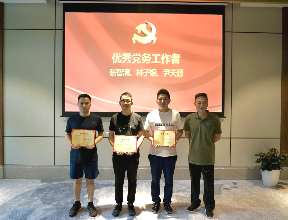 表彰會上,全體黨員在黨委書記、董事長張波同志的帶領(lǐng)下重溫入黨誓詞,重憶入黨初心??偨?jīng)理彭扶民同志宣讀了《關(guān)于表揚(yáng)2021—2022年度優(yōu)秀共產(chǎn)黨員、優(yōu)秀黨務(wù)工作者的通報》。張波同志、彭扶民同志分別為“優(yōu)秀黨務(wù)工作者”“優(yōu)秀共產(chǎn)黨員”頒獎。