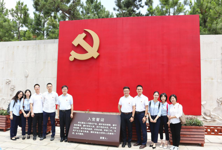 參觀完革命紀(jì)念館,公司黨員集體肅立在誓言墻前,面對鮮紅的黨旗,莊嚴(yán)舉起右手,重溫入黨誓詞,接受黨性洗禮。