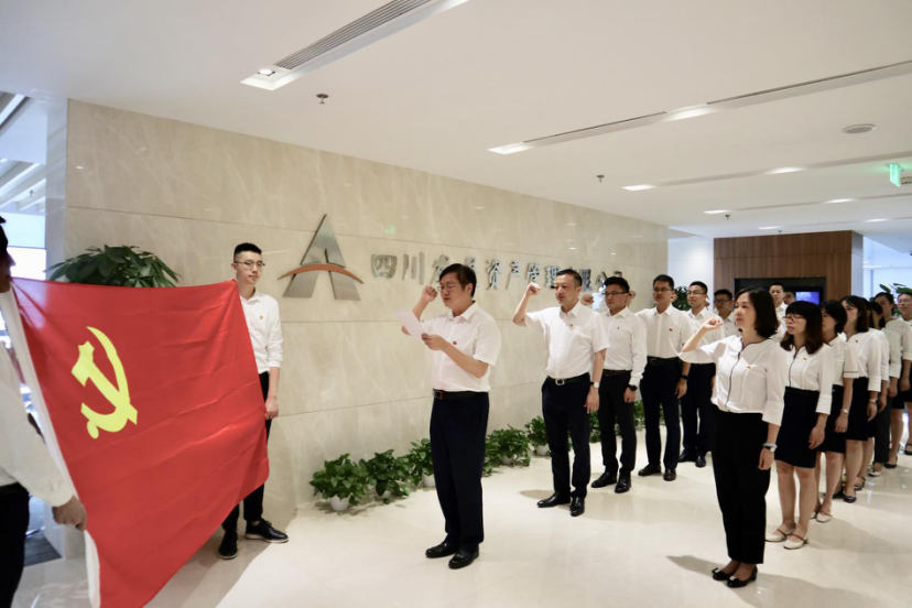為慶祝中國共產(chǎn)黨成立98周年,四川發(fā)展資產(chǎn)管理有限公司黨支部在7月1日開展主題黨日活動,重溫入黨誓詞。
