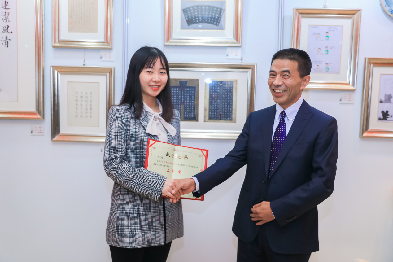 在“慶祝中華人民共和國成立70周年書畫攝影作品展”上,資管公司共選送了18件作品參賽,經(jīng)過專業(yè)評委評選,其中六件作品獲得名次,尤其是投資銀行部萬文怡的書法參賽作品《黨的征程》獲書畫類一等獎。