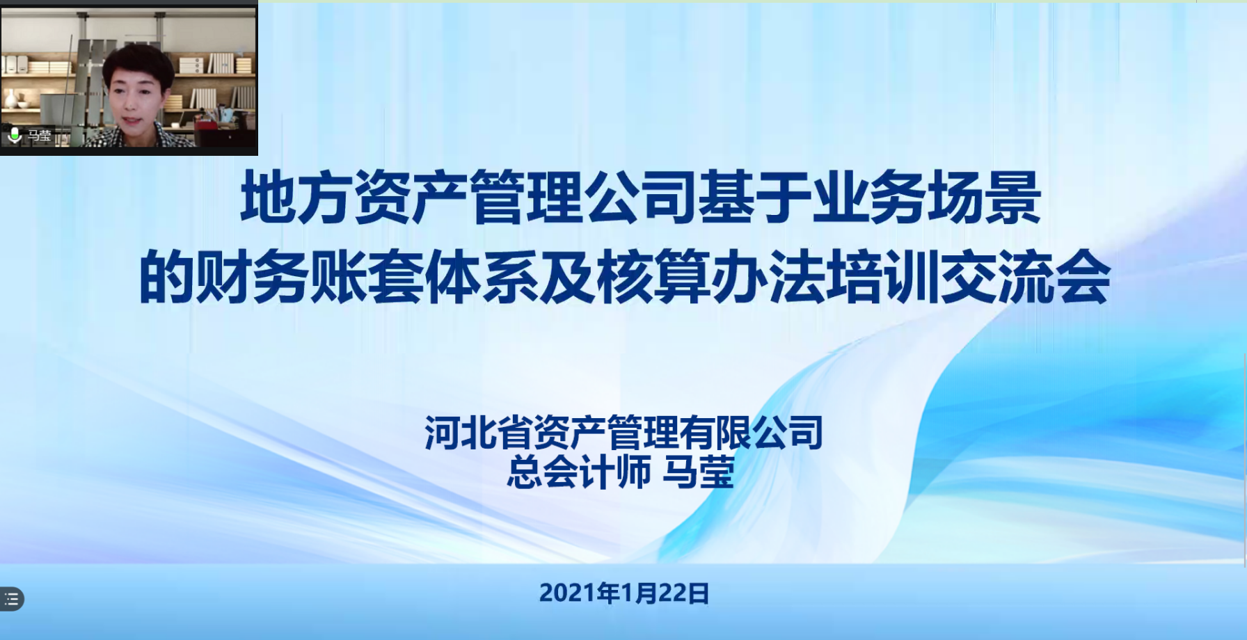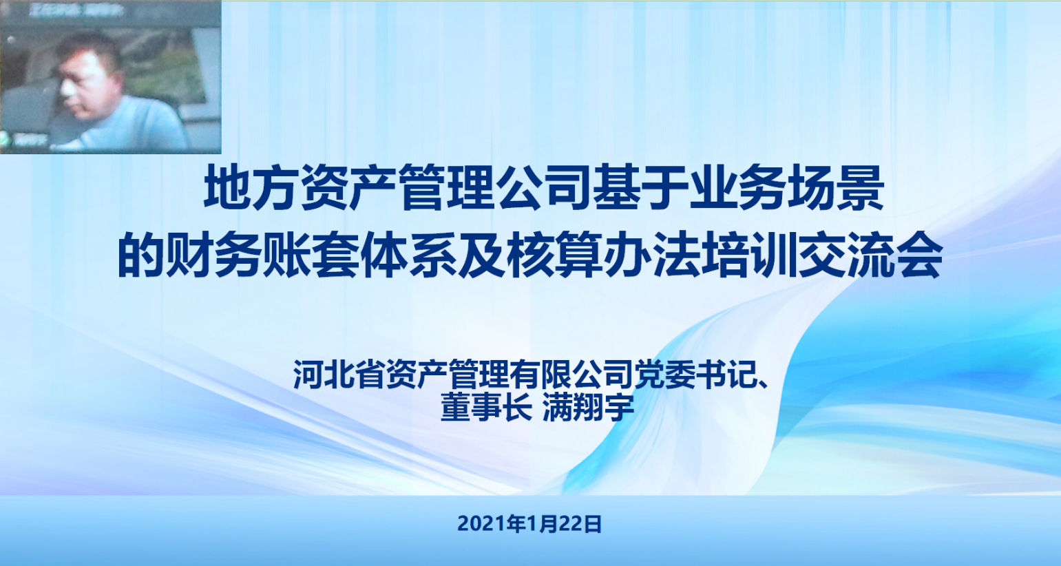 2021年1月22日下午,在中國地方AMC論壇輪值主席單位山東省金融資產(chǎn)管理股份有限公司、秘書長單位四川發(fā)展資產(chǎn)管理有限公司(以下簡稱“川發(fā)資管”)和河北省資產(chǎn)管理有限公司(以下簡稱“河北資管”)積極倡議下,由川發(fā)資管負(fù)責(zé)承辦的地方資產(chǎn)管理公司基于業(yè)務(wù)場景的財(cái)務(wù)賬套體系及核算辦法培訓(xùn)交流會(huì)成功舉行。本次會(huì)議通過線上視頻會(huì)議的方式召開,全國近50家地方資管公司100余名財(cái)務(wù)條線從業(yè)人員以視頻連線方式參加會(huì)議。會(huì)議由川發(fā)資管黨委書記、董事長、總經(jīng)理蒙宇主持。