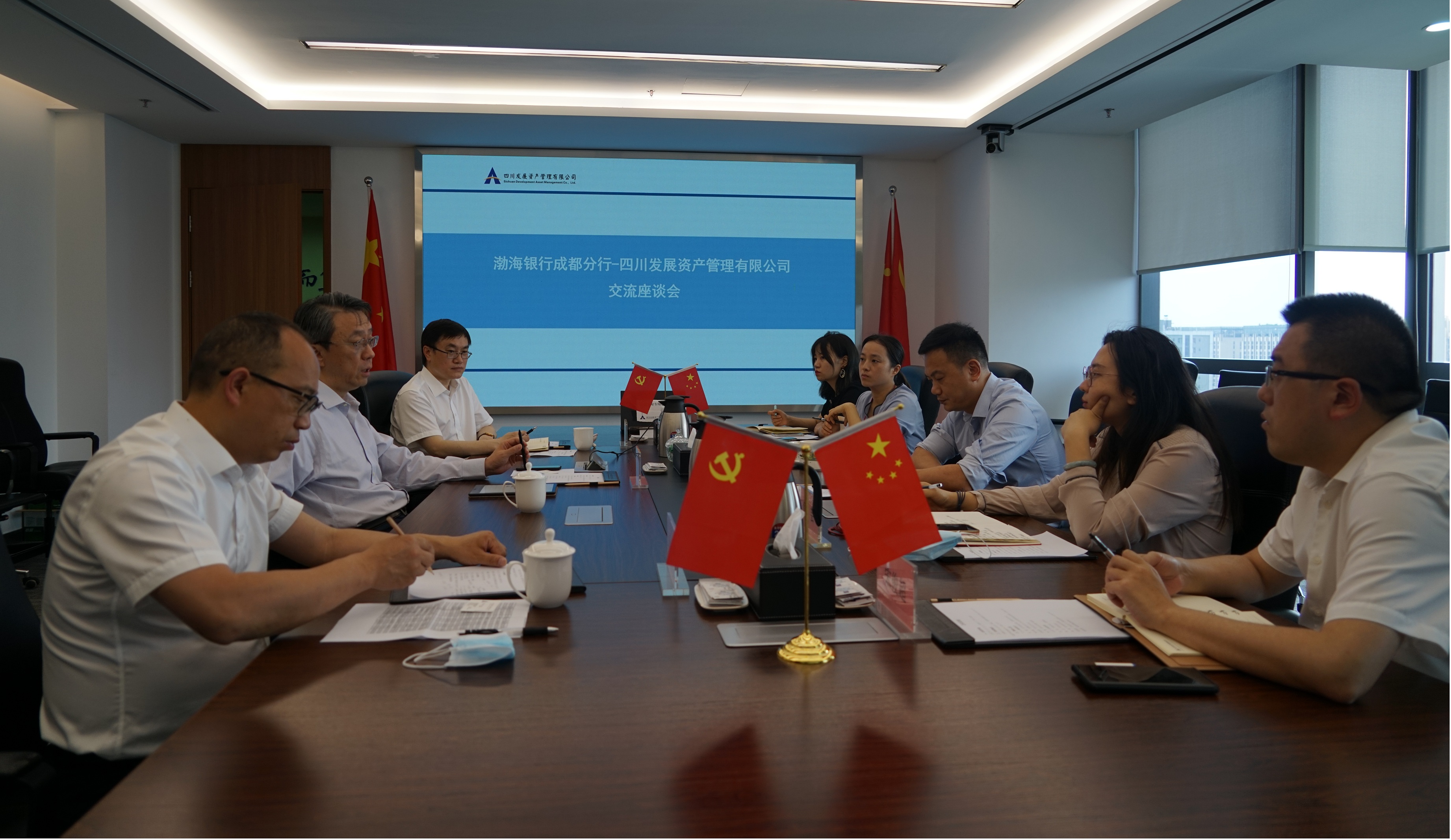 5月10日下午,渤海銀行總行條線總裁、成都分行行長金韜一行赴四川發(fā)展資產(chǎn)管理有限公司,與川發(fā)資管黨委書記、董事長張波就全方位加強雙方合作開展座談交流。